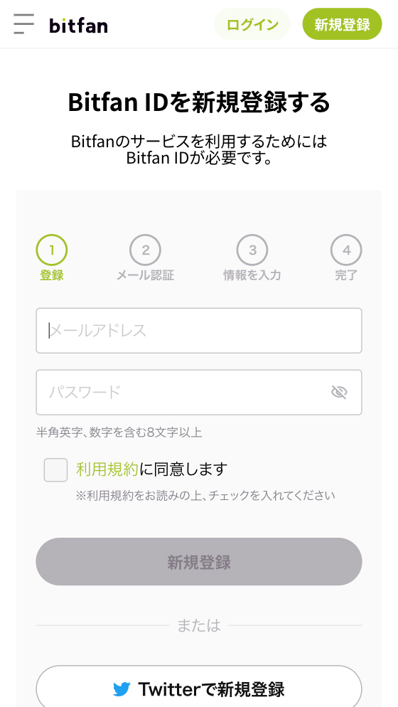 Bitfanのアカウントを作成。